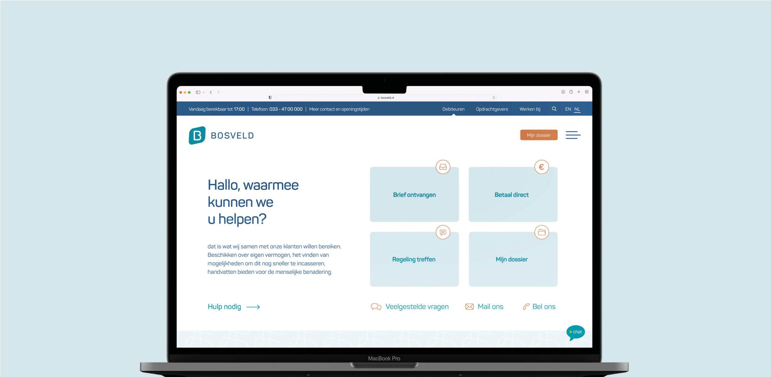 Organizations can contact Bosveld for, among other things, training in debtor management, legal services, debtor management, debt collection and judicial enforcement.